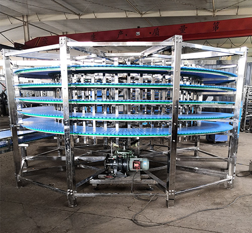 - 寧津縣鑫昌達(dá)機(jī)械廠主營(yíng)食品回盤線,面包螺旋冷卻塔,輸送機(jī)設(shè)備,面食品、菜卷、春卷、蔬菜、水果、肉食、油炸品、小包裝食品的輸送,分單塔和雙塔多層不銹鋼機(jī)身,占地面積小,輸送量大,采用食品級(jí)螺旋網(wǎng)帶易清洗和維護(hù)。要形成三到6個(gè)月之間對(duì)螺旋冷卻塔進(jìn)行定期檢查,若是內(nèi)部出現(xiàn)問題,應(yīng)當(dāng)由專業(yè)技術(shù)人員對(duì)其維修。